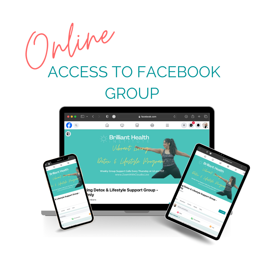 Access to our Vibrant Living Members Only Facebook Group, where you get 24/7 support from our wellness team.